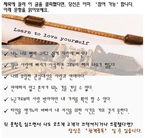 만일 ‘이성관계에서의 과도한 몰입’이나 ‘타인에 대한 지나친 희생’으로 인해 고민 중이시라면