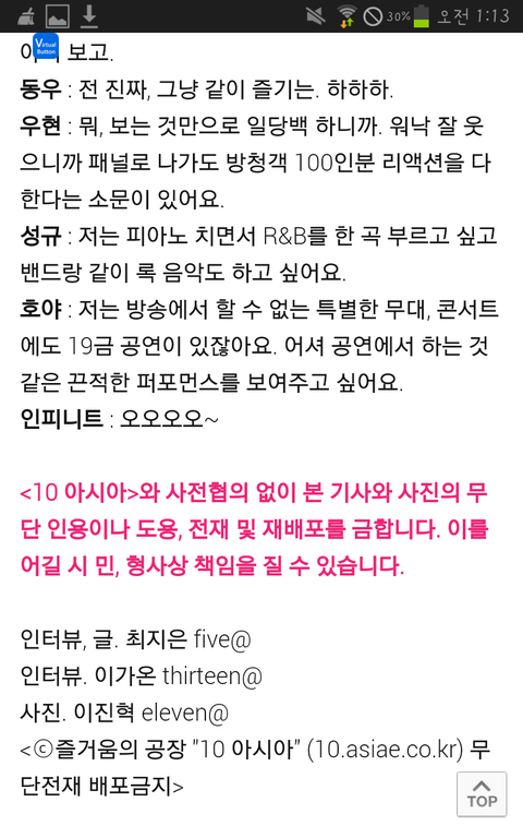 저 기사 나온지 얼마 안 됐을 때 댓글에 아이돌 왜 만들었냐, 불쌍해서 댓글 하나 남겨준다는 반응들이 몇개 있었는데 지금은 저기 본문에서 말한 것들 중에 이룬 것도 많고..ㅎ 저번에 어떤 타팬이 인피니트 성장과정이 사교육없이 SKY보낸 거나 다름없다고 했는데 그 말 진짜 맞는 것 같다 불확실한 미래를 자기들이 노력해서 만들었으니까ㅜㅠㅠㅠㅠㅠ지금의 인피니트는 그동안 애들이 해왔던 노력으로 보상받으며 만들어진 게 아닐까 싶다. 벌써 7년차 아이돌이 됐고 인기 아이돌 중 한 팀이 됐다는 게 너무 자랑스러워