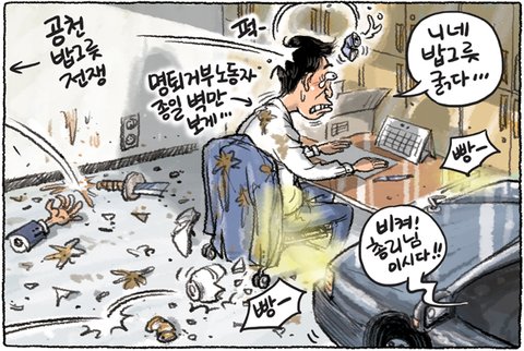 충격적인 이 사진 "명퇴 거부자를 원숭이처럼"