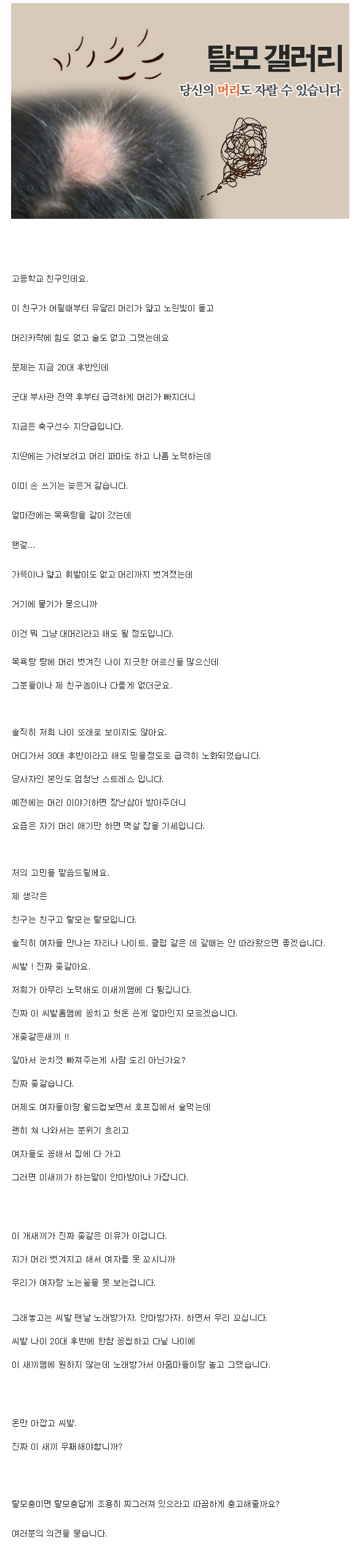 탈모 친구의 고민