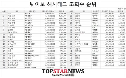 웨이보 태그순위보면 팬들 열일한다는 생각밖에 ㅋㅋㅋ