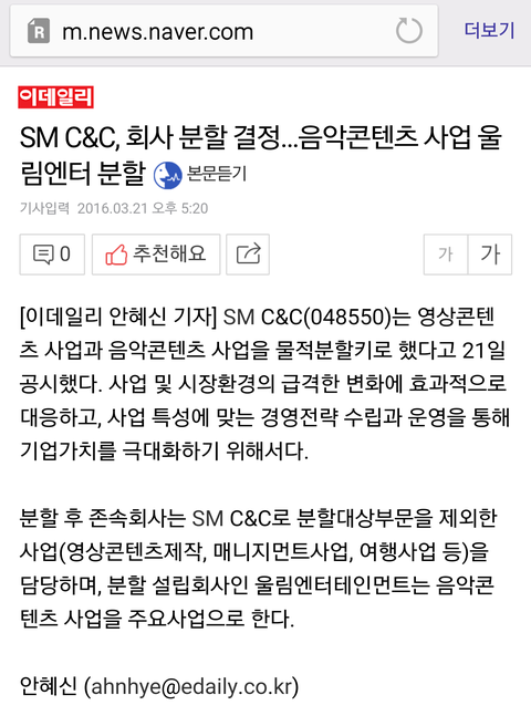 ㅅㅇ c.c 울림분할 기사