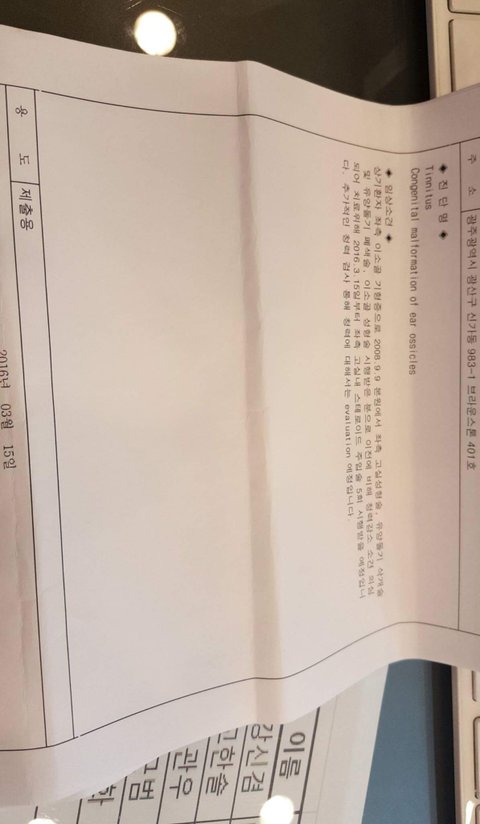 폭행 이후 한달뒤 청력ㅊ검사지
