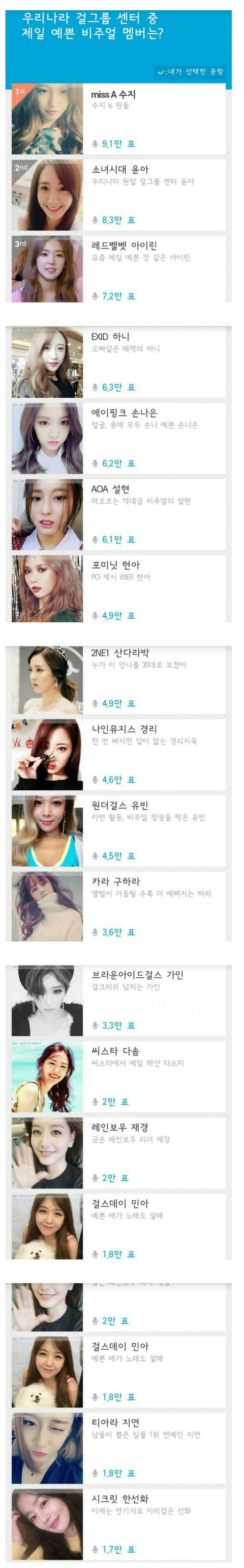 아이돌들이 뽑은 걸그룹 멤버 실물순위