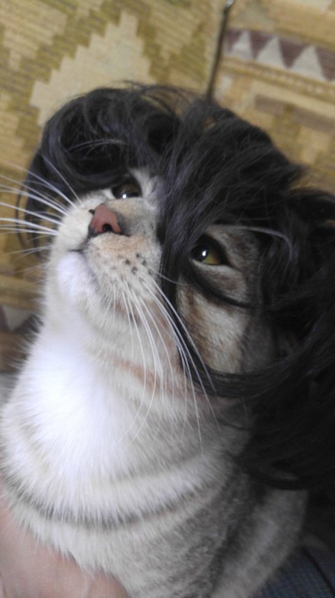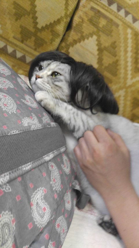 사랑이가 티비에 나오길래 생각이나서 가지고 있던 빠션 가발을 투척해줌ㅋ