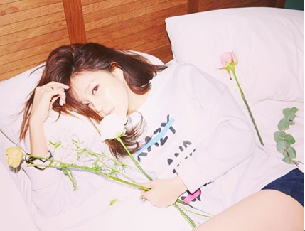 인스타 화보에서 바나나크레이지 와펜 맨투맨으로 몽환반전매력 뽐내고 있는데