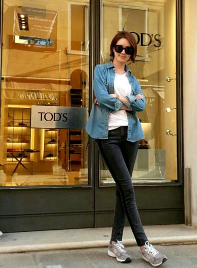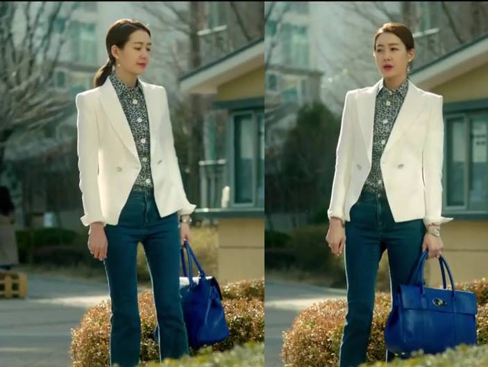 캐주얼하게 청바지 + 블라우스에 피에르 발망 화이트 자켓 걸친 패션에서도 돋보이는 그녀의 몸매는 뭐죠 ㄷㄷ ..