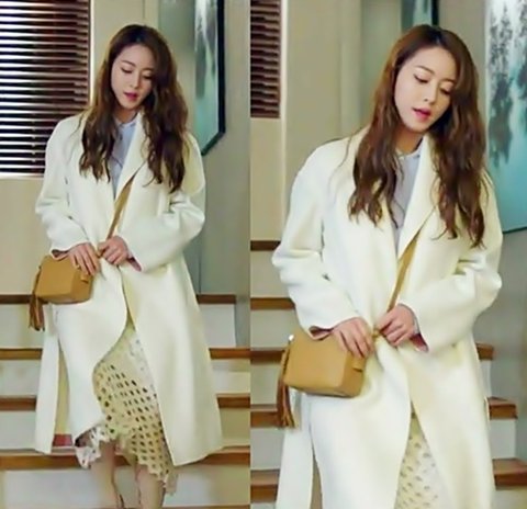 화이트 코트에 올세인츠 가방으로 봄느낌 물씬 내주는 센스하며
