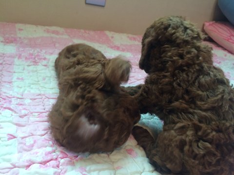 우리 곱디곱게자란 별이 처음으로 다른 강아지에게 물려봄(새끼들).