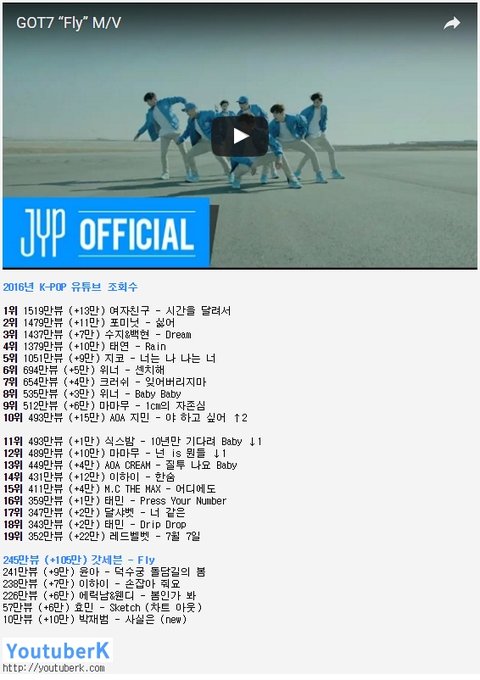 유튜브 플라이 뮤비조회수도 2일만에 약 250만 돌파