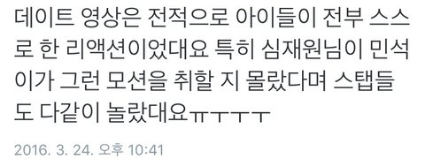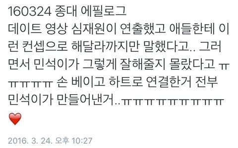 에필로그 얘기중에 데이트VCR 애들이 각자 알아서 한거라는데 민석이 보구 너무 잘해서 놀랐다고ㅠㅠㅠ 맞아요 우리애가 이케 이케 잘해여ㅠㅠㅠㅠㅠㅠ