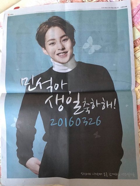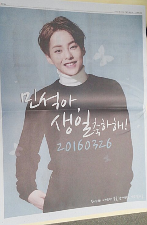 오늘자 스포츠신문에 시우민 생일 광고 있대!!!