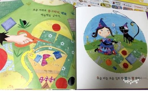 요술 반짇고리로 마녀와 고양이가 재미있게 터전을 만드는