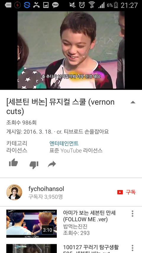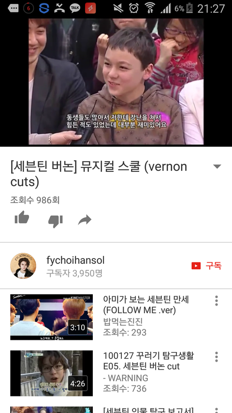글고 막 거기서 인터뷰하는데 뭐 힘든점 있냐고 버논이한테 물어보니까 한솔이가 힘든건없는데 막 애들이 장난많이치고 놀리는것말고는 없다그랳는데 주위여자애들이 막 한솔이 인기많다곸 ㅋ ㅋ ㅋ 알고보니 여자애들이 한솔이에게 접근하려고 그러는거였음.. 막 쉬는시간되면 주위가 다 여자애들이라고...ㄷㄷㄷ