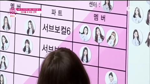 원하는 포지션인 서브보컬 6번이 다 차있는데 차마 다른 멤버들 밀어내진 못하고 사이에 자기 사진 붙여둠ㅋㅋㅋㅋ