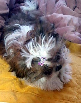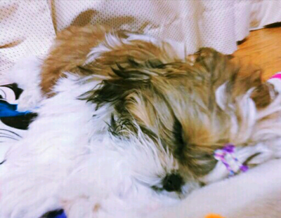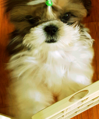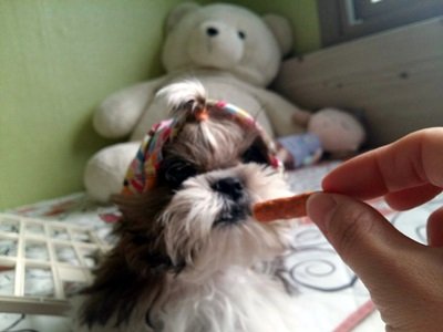 간식도 잘 뜯는 그런 매력적인 강아지죠~