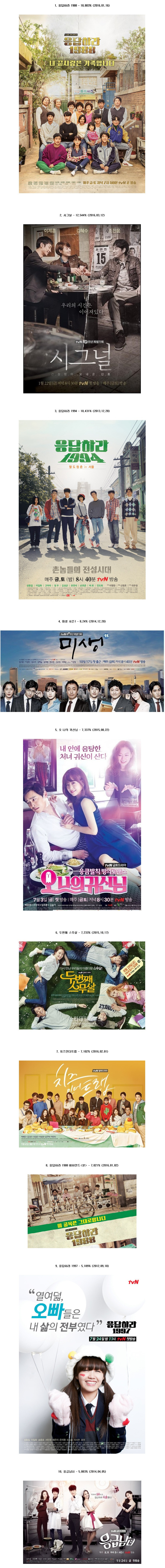 TVN 드라마 최고 시청률 순위