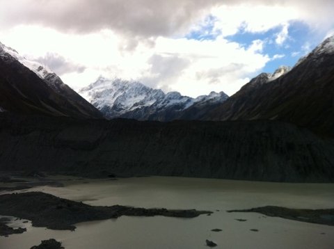 날이 갠 마운틴쿡은 정말 예술이었음. 왜 사람들이 마운틴쿡을 뉴질랜드 여행중에 최고로 꼽는지 알 수 있을 것 같았음. 잠시였지만..
