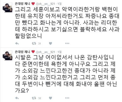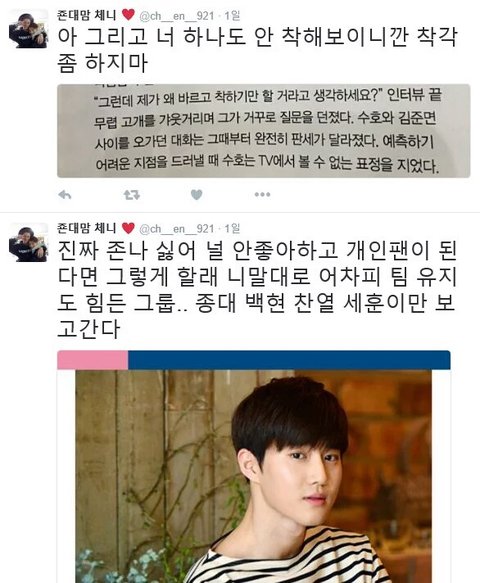 짹 첸팬이 수호 욕한거 이거임 ㅋㅋㅋ