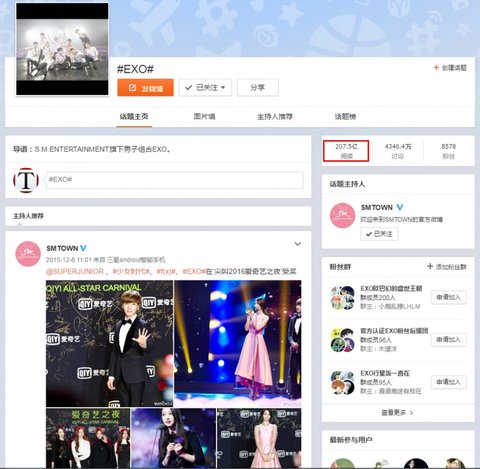 엑소(EXO), 한류스타 최초로 웨이보 해시태그 200억 조회 돌파