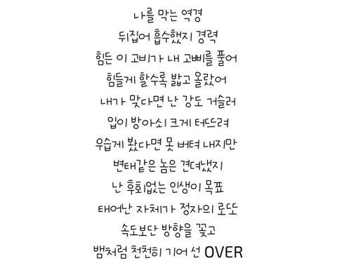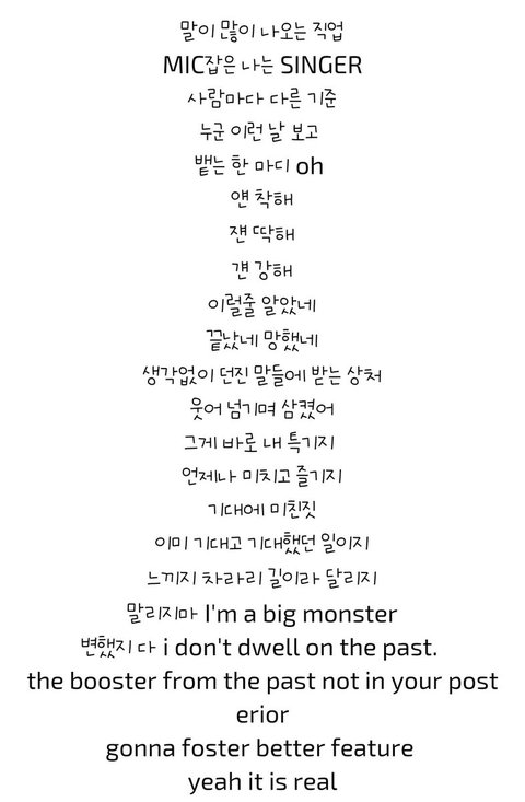 동우는 처음에 무반주 자작랩을 선보임.(가사는 사진첨부)