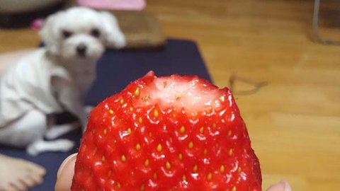 하나 남은 딸기를 아련하게 바라보네요 ㅋㅋㅋㅋ