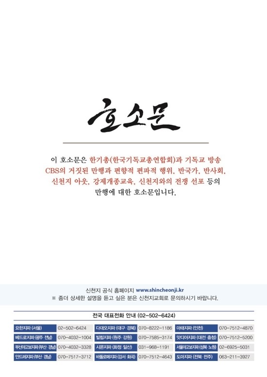 "새 하늘 새 땅"(계21:1) 성경에 명시된 이름으로 하나님이 정해준 약속의 성전 "증거장막성전"을 종교 단체장들이 음해하고 불의한 만행에 대한 호소문입니다.