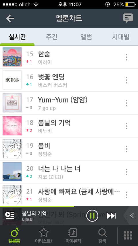 아까 학원갔을때 공기계로 스밍해놓는거 깜빡해서 못하고 있었는데 집와서 보니까 25위? 정도였는데 내가 스밍돌리니까 점점 올라가고있다!