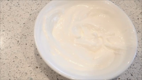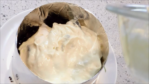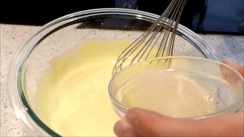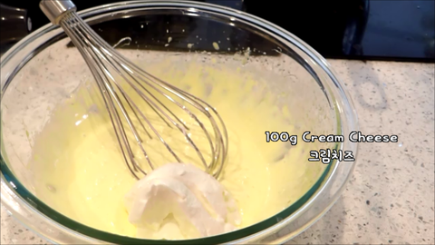 8. 노른자 반죽에 젤라틴 3g과 물 15g을 전자렌지에 10초돌린걸 넣고 섞어주세요.