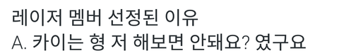레이저 담당멤버 뽑을 때 스스로 해보고 싶다고 말한 종인이 넘나 귀여운건 이래놓고