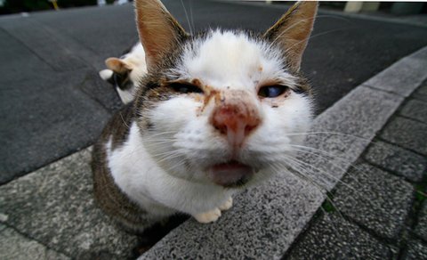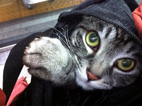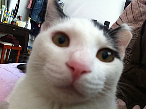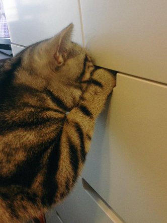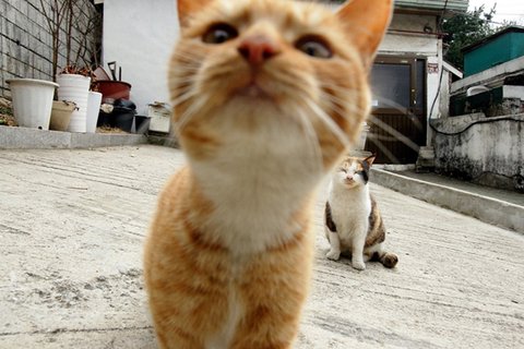 무작정 얼굴만 들이미는 고양이