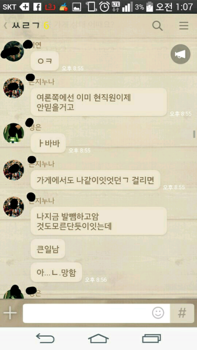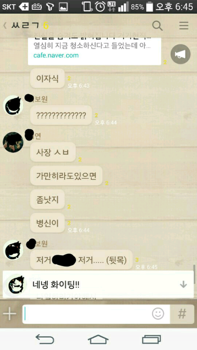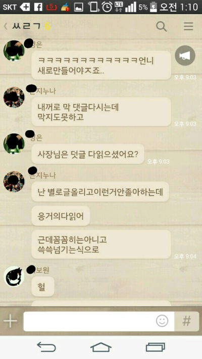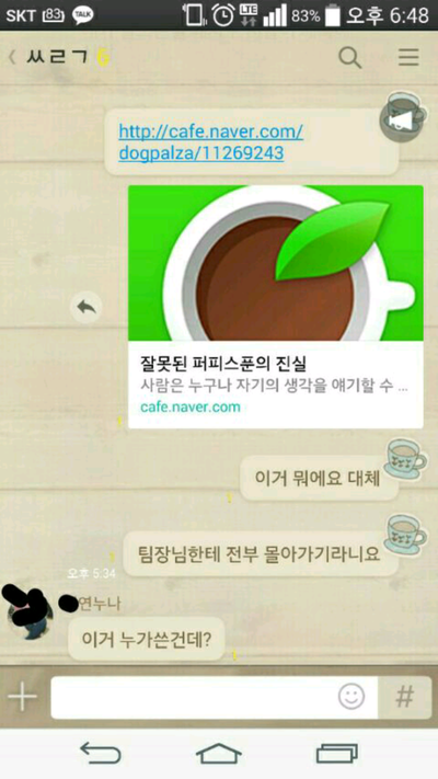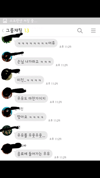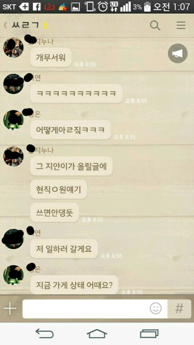 그러더니 뒤에서 지들끼리 따로 대화방을 만들어 얘기하는 내용입니다