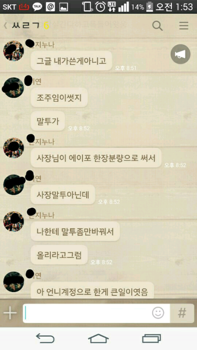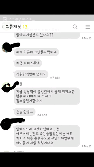 이 모든 내용을 입증해주는 원글쓴이와 돌아선 전직원들 사장밑에서 일하는 현직원과의 카톡내용입니다