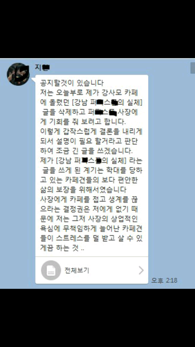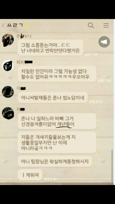 강사모에는 저위에 공지글처럼 올리려했대요 공지글 올라오면 올려줄생각이었지만 대화내용보니 그럴필요도 없겠네요 저희가 이걸 알고있단걸 알면 아주 난리가 나겠죠여기서 말하는 x노답이 저희입니다 저희가 노답입니까 ? 사람이 어떻게 이렇게 변하죠 ?