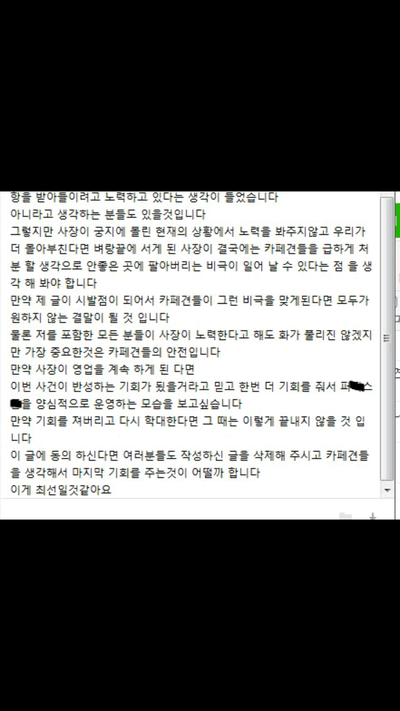 신고는 굴뚝같이 하고싶지만 신고를 하게되면 카페애들이 걱정이라서 다들 좀 더딘감은 있습니다.