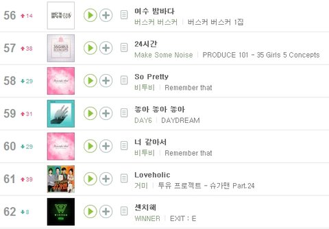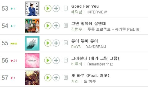 음원순위가 막 오르기 시작하는