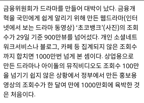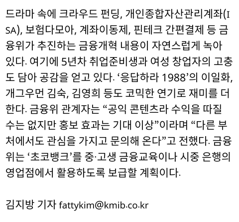 대박 난 금융위 웹드라마 초코뱅크