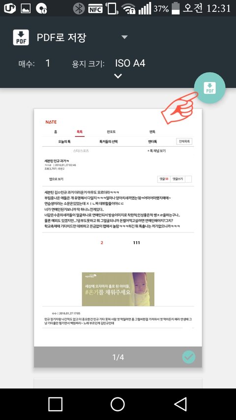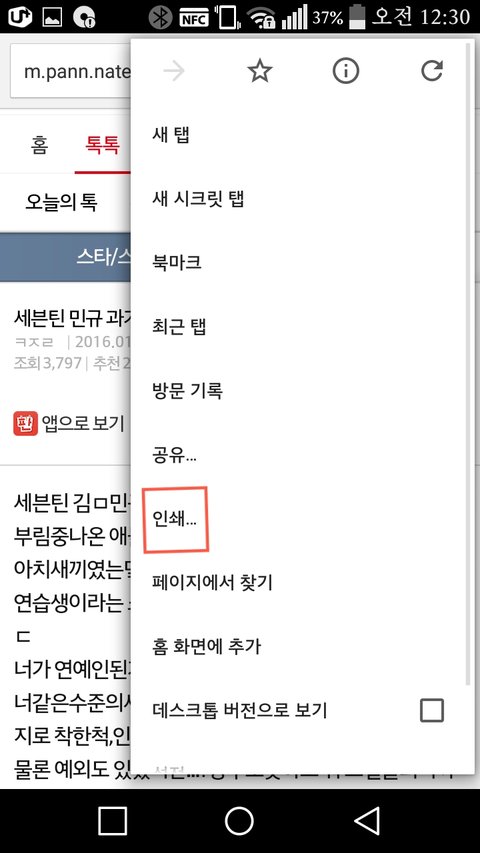 여기서 인쇄버튼을 눌러! 다시한번 말하지만 모바일이야