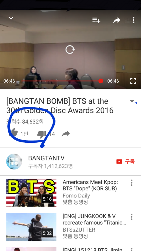 오늘자 방탄밤 조회수..
