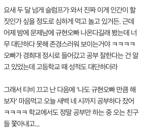 '문제적남자'라는 프로그램에 규현오빠가 나와서 보게됐는데 이 때 내가 엄청난 현타가 와서 올린 글이