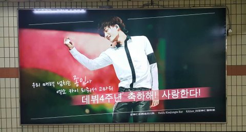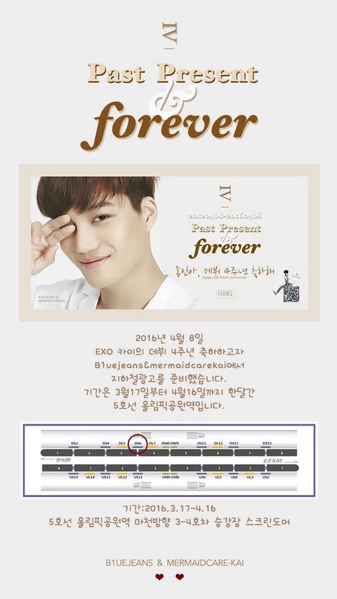 다음은 B1ueJeans와 Mermaidcarekai에서 준비한 지하철 광고 위치는 5호선 올림픽 공원역 마천방향 3-4호차 승강장 스크린 도어입니다ㅂ0ㅂ)/ 종인이의 너무 예쁜 논노 화보를 이렇게 크게 볼 수 있다니 인어들 꼭 들러서 실물을 보길 바래요