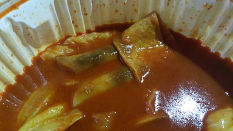 배달앱을 이용하여 매운 떡볶이(프렌차이즈)를 주문하였습니다.