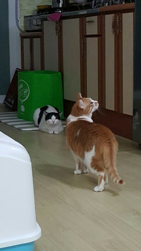 -고양이와 친화적입니다. 동거했던 임보냥들, 입양처에서의 고양이와도 너무 잘 지냈어요.