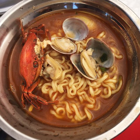해루질후 끓인 꽃게라면