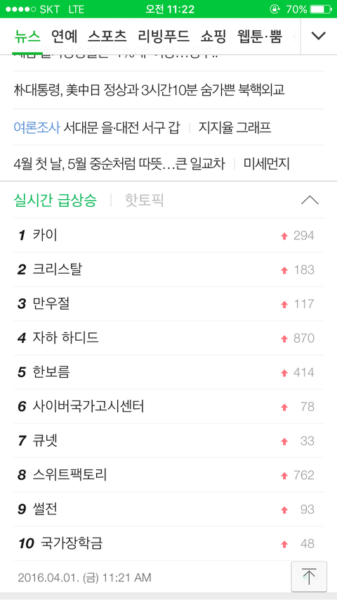 아니 지금 간부수련화와서 강의듣다가 인터넷 봤는데 실검에 있드랴 아니겠지 아닐꺼야 오늘 만우절이니까 그렇지?? 응??
