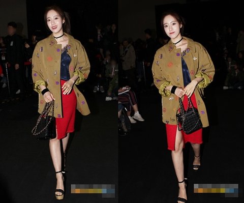 거기다가 눈에 톡톡 튀는 빨간색 치마에 힐다백 하나 들고 등장했는데