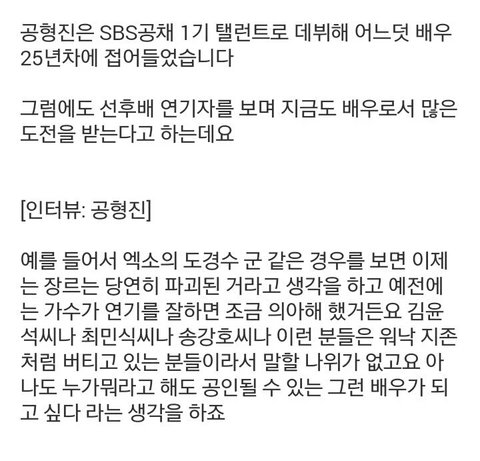 나 나름대로는 네가 컬투쇼 꽁트하는 거 보고 몰입력이랑 표현력이 남달라서 연기 잘할 것 같다고 가능성을 봤던 것 같은데