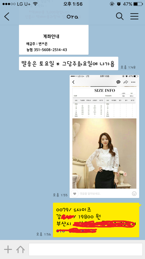 그렇게 판매자에게 사이즈 상담은 받지도 못하고 내 옷 중에서 가장 맘에 드는 블라우스로 사이즈를 재어보고