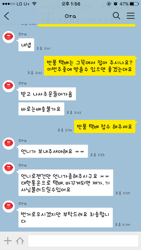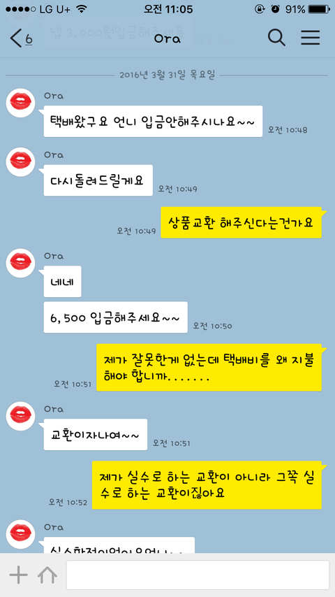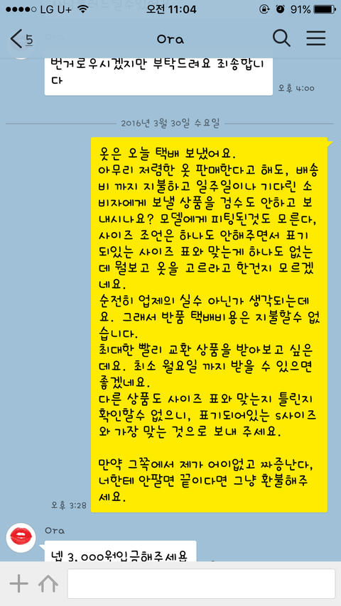 근데 착불로 보냈다 어떻게 나오나 두고 보자 하며 장문의 문자를 보냈다.