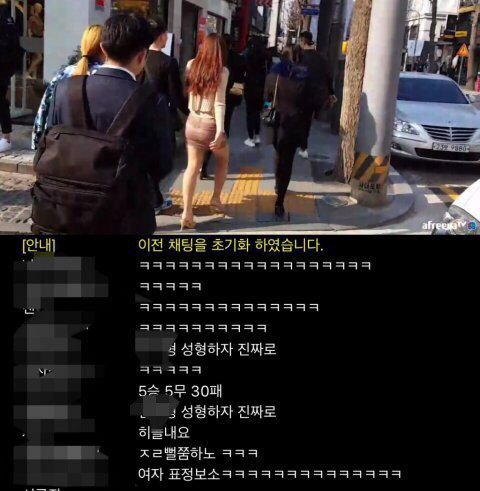 아프리카 BJ인데 시청자수 올릴려고 은근슬쩍 여자 뒷모습이나 다리를 찍음 그러면서 같은 방향이니 카메라 오해하지 말라고함 ㅋㅋㅋ 일부로 같은 방향으로 가는척 하면서 은글슬쩍 다리 찍고 그러던데 솔직히 이거 도촬 아님? 채팅보니깐 드립들도 가관이던데.. 인터뷰 같은거 안해주면 패드립에 김치 김치 거리고 거의 신고감임.. 방송한다치고 동의없이 카메라 들이밀던데 솔직히 이것도 도촬 아닌가요 상대방 동의없이 카메라 찍는거면? 진짜 궁금해서 물어보는겁니다 이런식으로 은근슬쩍 촬영하는 비제이들 요즘 꽤나 많던데 어떻게 생각하시나요?